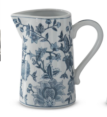 This striking 9" pitcher commands attention with its bold blue and white porcelain construction, showcasing intricate chinoiserie patterns that evoke timeless Asian artistry. The daring design features hand-painted details that transform any space into a gallery-worthy display. Perfect for the collector who refuses to play it safe, this statement piece works equally well as a functional pitcher or sculptural accent. Its generous size and commanding presence make it an instant conversation starter for those with refined, adventurous taste.