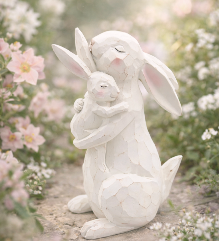 Carved Mother Bunny with Baby