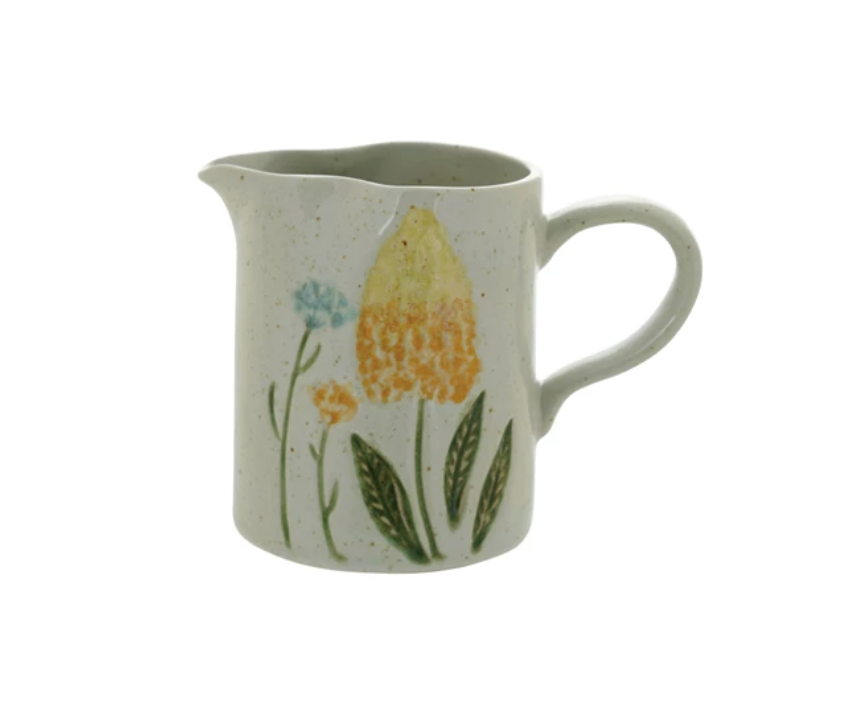 Hand Painted Stoneware Pitcher with Flowers
