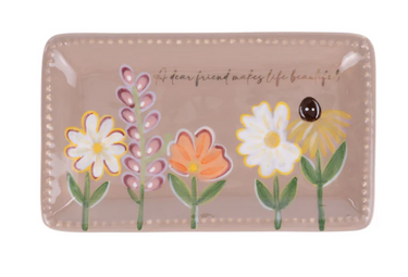 Delicate and full of charm, this Floral Friendship Trinket Tray features hand-painted style blooms accented with gentle colors and thoughtful details. Along the top is the sweet sentiment: