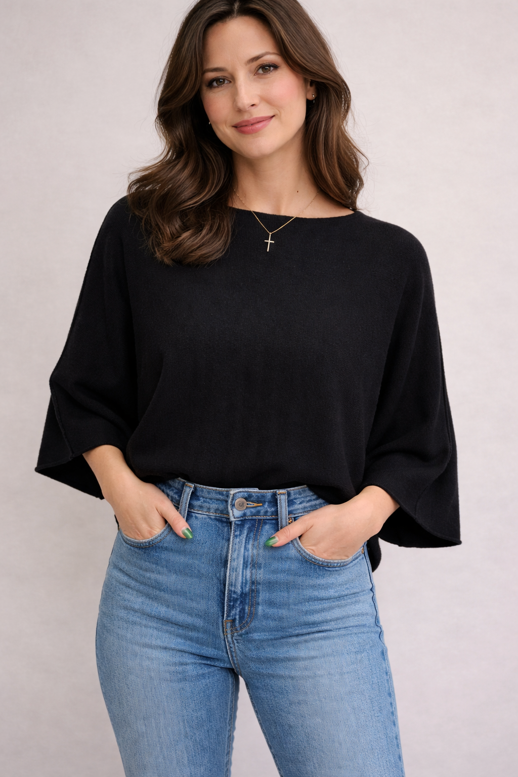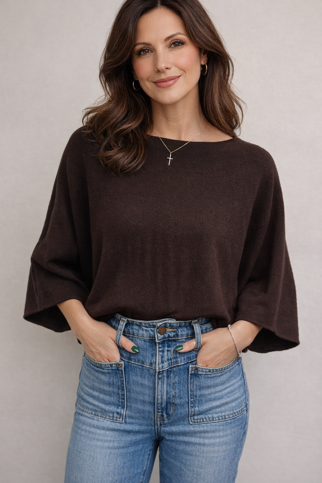 Indulge in refined comfort with this exquisite crew neck batwing sweater. Crafted from a sumptuous blend of viscose, polyamide, and polyester, this piece delivers a luxuriously soft feel against your skin. The graceful batwing sleeves create an elegant silhouette while the rounded neckline offers timeless sophistication. Perfect for elevating your everyday wardrobe with understated luxury and effortless style.