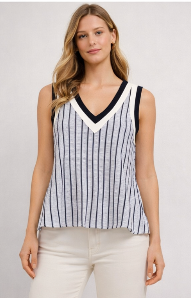 Effortless style meets comfort in this versatile sleeveless tank top. The classic v-neck design flatters any frame, while soft fabric moves with you throughout your day. Perfect layered under jackets or worn solo, this wardrobe essential pairs seamlessly with jeans, skirts, or shorts. A timeless piece that works for casual outings, weekend errands, or relaxed office settings.
