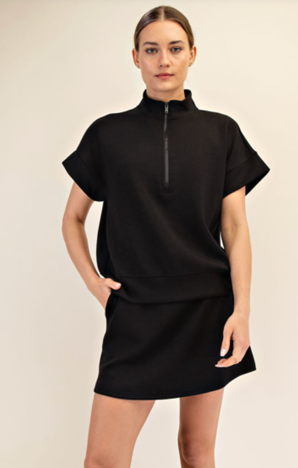 Discover effortless style with the Luxe V-neck Sleeveless Top, featuring our signature Modal Poly Span Scuba fabric that's silky smooth and incredibly lightweight. This relaxed-fit pullover showcases a panelled V-neck and dropped armhole for a modern, streamlined aesthetic. The 4-way stretch fabric moves with you, while the quarter zipper closure adds versatile styling options. Perfect for layering or standalone wear, this piece transitions seamlessly from day to night. Composed of 48% Modal, 45% Polyester, and 7% Spandex for lasting comfort and durability.