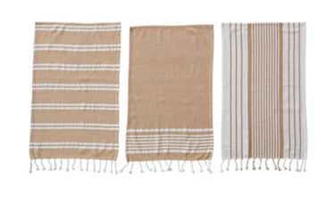 Woven Cotton Yarn Dyed Towel w/ Stripes & Tassels, 3 Styles