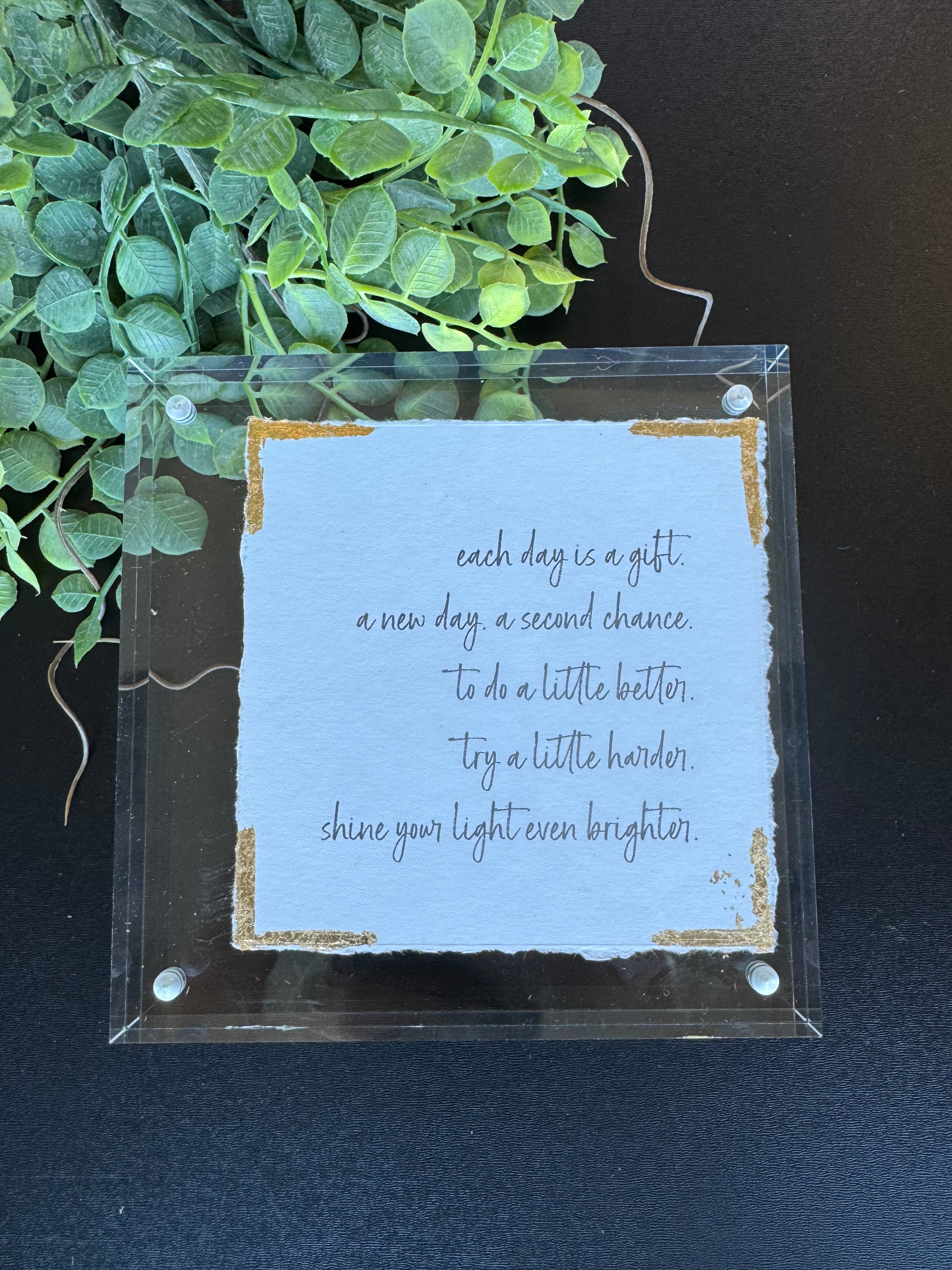 Keep inspiration close with the 5 x 5 Each Day is a Gift sign. Its heartfelt message paired with a compact design makes it easy to style on desks, shelves, or mantels. A gentle reminder of gratitude, it brings warmth and positivity to daily living spaces.