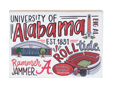 Show school spirit with the Alabama Icon Block. Its bold design makes it a standout piece for shelves, desks, or gift giving. A meaningful accent for fans and alumni alike.