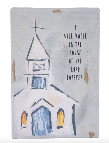 Dwell in the House of the Lord Church Canvas Step into serenity with this charming hand-painted church canvas that brings the beloved verse to life. Featuring warm, inviting colors and thoughtful artistic details, this piece creates a peaceful sanctuary vibe wherever it hangs. Whether you're decorating a hallway, living room, or prayer space, it's the perfect year-round companion for spiritual encouragement. At just 4" x 6", this original design comes ready to hang—no fuss needed. It's an ideal heartfelt gift for baptisms, housewarmings, or anyone who could use a gentle reminder of where true refuge lives.
