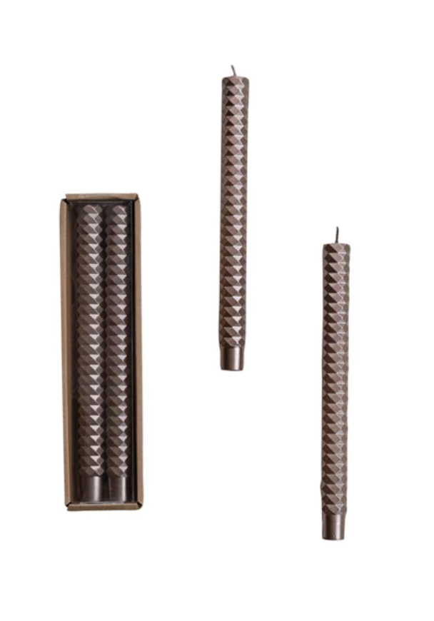 Create a warm glow with the 10" Faceted Tapers. Their unique faceted design adds subtle shimmer, making them perfect for dinner parties, holiday gatherings, or cozy evenings at home.