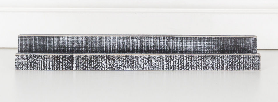 Decorate with ease using the 12" Letter Tile Ledgie in Black. Its bold typography brings a rustic yet modern touch to shelves, mantels, or tables. Arrange it with seasonal pieces or let it stand alone as a striking statement of charm.