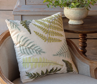 Bring natural elegance into your home with this stunning 18" embroidered fern pillow. Delicate botanical details are expertly stitched across soft fabric, creating a sophisticated focal point for any room. Perfect for adding texture and visual interest to your sofa, bed, or favorite reading nook, this pillow combines artisanal craftsmanship with timeless design. The intricate embroidery celebrates nature's beauty while the generous size ensures maximum comfort and impact. Transform your space with a piece that feels both curated and inviting.
