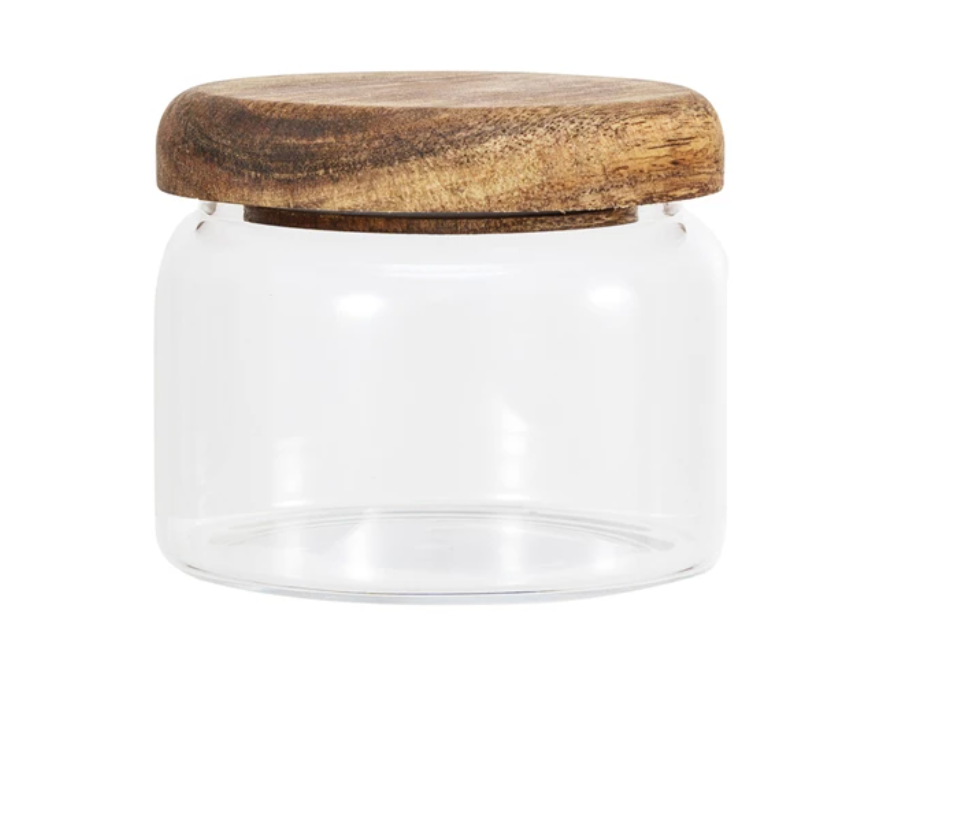 Store in style with the 3-1/4" x 2-3/4" 8 oz. Glass Canister w/ Acacia Wood Lid. Its mix of natural and glass makes it perfect for the kitchen or bath.