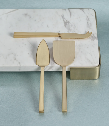 Serve in style with the Brushed Gold Cheese Serving Set, designed for effortless entertaining. Its sleek golden finish adds elegance to any table, while the durable construction ensures it’s ready for endless gatherings. Perfect for pairing with charcuterie boards or as a thoughtful hostess gift.