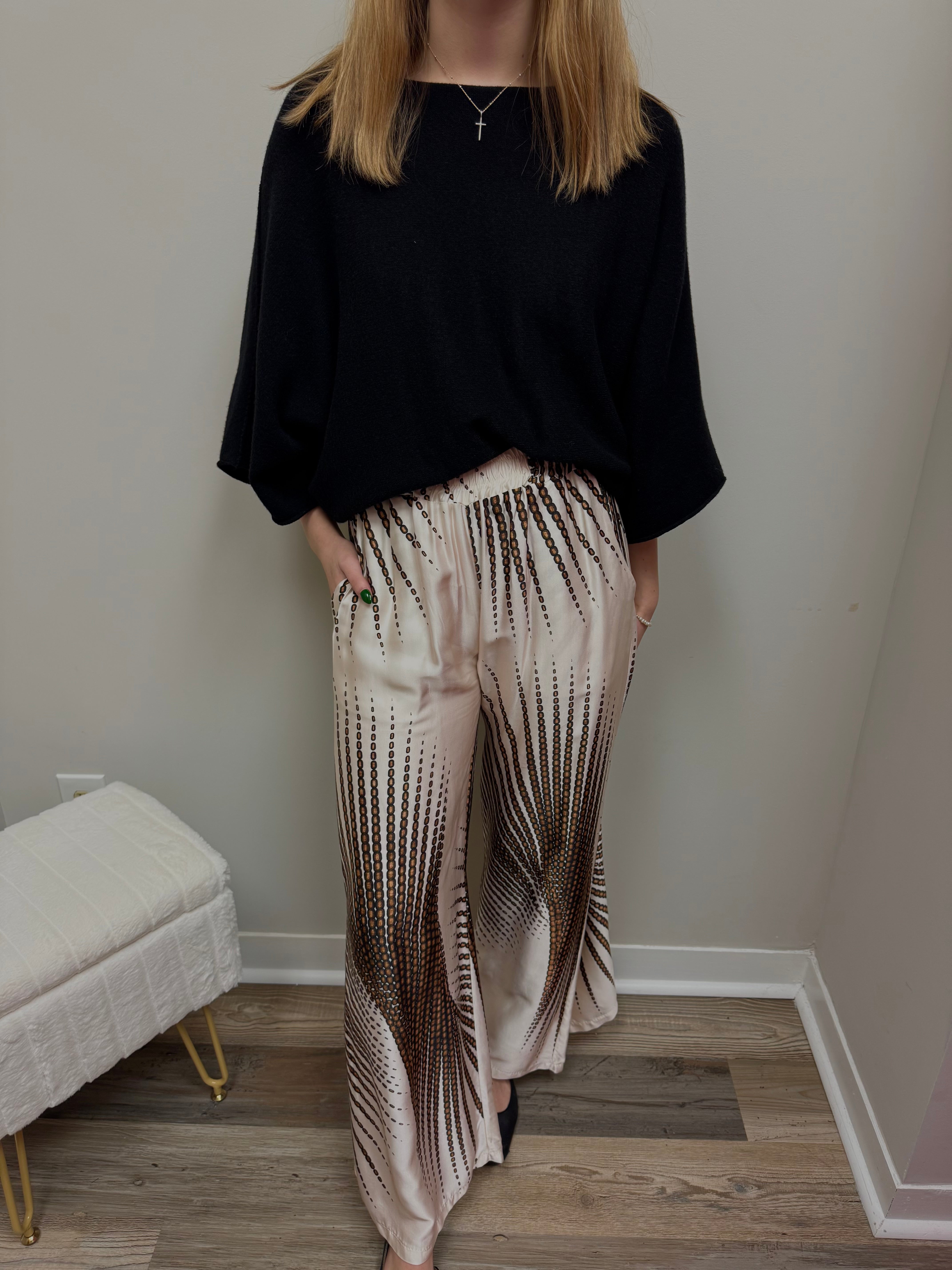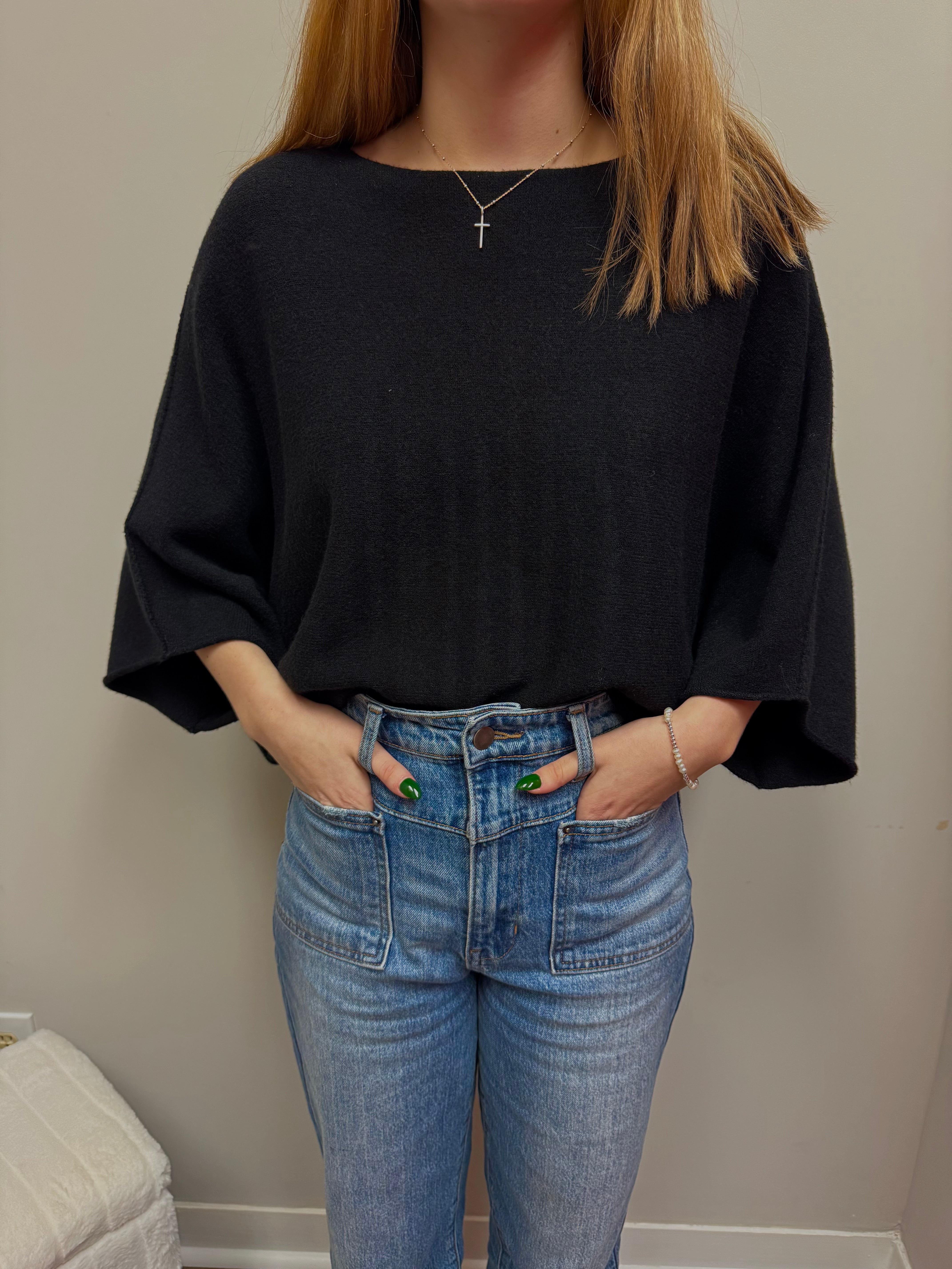 Indulge in refined comfort with this exquisite crew neck batwing sweater. Crafted from a sumptuous blend of viscose, polyamide, and polyester, this piece delivers a luxuriously soft feel against your skin. The graceful batwing sleeves create an elegant silhouette while the rounded neckline offers timeless sophistication. Perfect for elevating your everyday wardrobe with understated luxury and effortless style.
