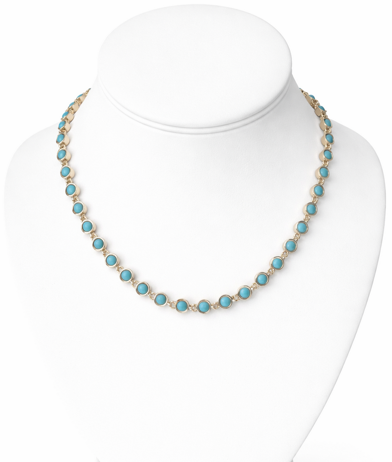 Elevate your everyday style with this stunning Crew Turquoise Necklace, a timeless piece that brings vibrant color and natural beauty to any outfit. The rich turquoise stone catches the light beautifully, making it perfect for adding a pop of personality to casual looks or layering with other favorites. Whether you're dressing up for a special occasion or keeping it effortlessly chic, this versatile necklace is the accessory you'll reach for again and again. A must-have addition to your jewelry collection.