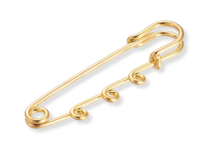 A modern twist on a classic accessory, this Charm Brooch is designed to do more than just look pretty. Featuring a sleek gold-tone safety-pin silhouette with built-in loops, it allows you to add charms and create a look that’s completely your own.