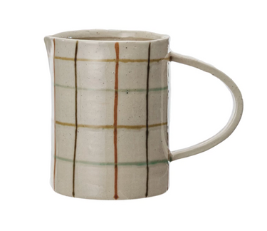 Brighten your table with the Mulitcolor Hand Painted Stoneware Pitcher. Its vibrant hues and artisan finish bring life to serving drinks or displaying flowers.