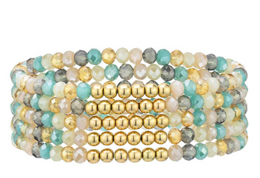 Add fun color with the Multi-Color Glass and Metal Stretch Bracelet. Its mix of tones and textures makes it a versatile accessory for casual and dressy outfits.