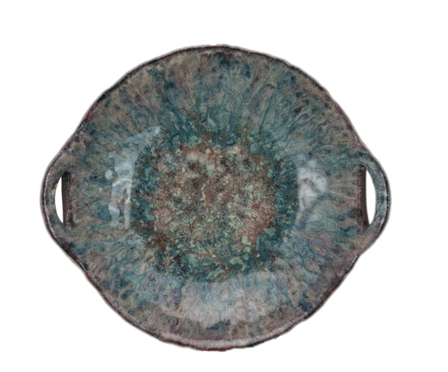 Serve with personality using the Multi Color Stoneware Bowl with Handles. Its sturdy design and vibrant finish make it a fun addition for soups, salads, or side dishes.