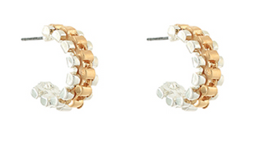 Highlight timeless style with the Pearl Edge Chain Hoops. Featuring delicate pearl accents along sleek hoops, they offer elegance and subtle sparkle. A versatile piece for work, weekends, or special occasions.