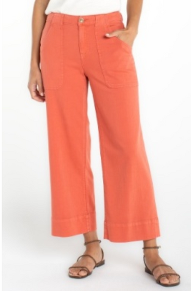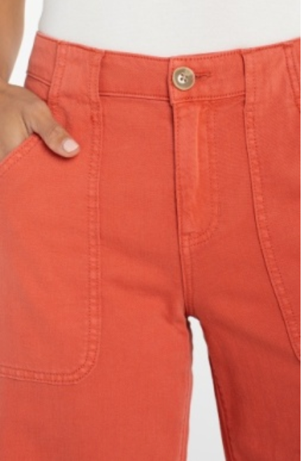 Elevate your everyday wardrobe with these striking Salmon cargo wide-leg crops. The rich, earthy tone brings warmth and character to neutral basics, while the relaxed silhouette offers effortless comfort. At 26 inches, this cropped length works beautifully with sneakers or sandals, making it a versatile piece for transitional seasons. The cargo detailing adds functional style without compromising sophistication. Perfect for those seeking a refined yet playful approach to color.