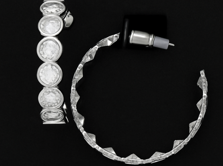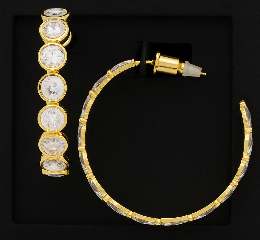 Make a bold statement with the Ryan Studded Hoops. Sleek metal adorned with studs offers an edgy yet polished look. Pair them with casual wear or night-out outfits for versatile style.