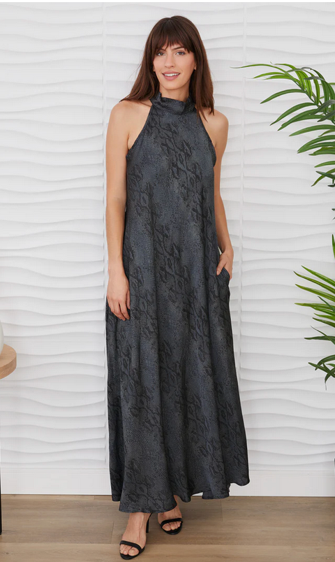 Make an unforgettable entrance in this stunning snake print maxi dress—flowy, bold, and effortlessly flattering. Designed with a chic high neckline and a relaxed A-line silhouette, it drapes beautifully over the body while giving you that elongated, elegant look. The soft, lightweight fabric moves with you, making it the perfect statement piece for dinner dates, events, vacations, or everyday glam.