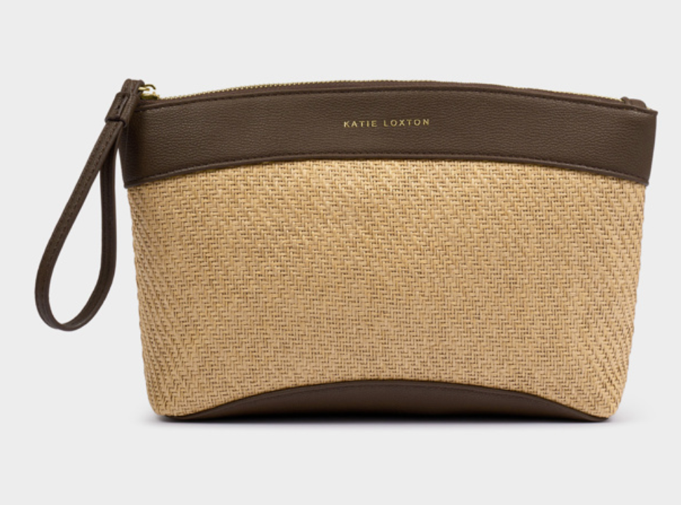 Wristlet Clutch, Natural Raffia Bitter Chocolate